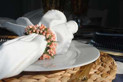 Notice I used my little white porcelain balls with black lettering on them for placecards. I also used them in a black and white tablescape with a touch of Pink HERE